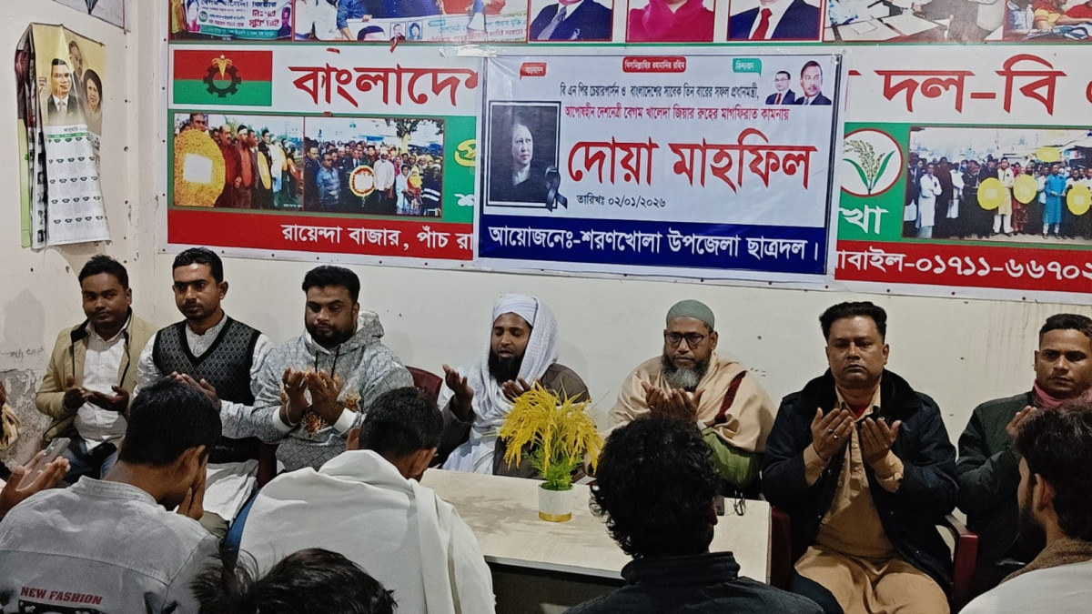 বাংলাদেশের সাবেক তিনবারের প্রধানমন্ত্রী ও বিএনপি চেয়ারপারসন দেশনেত্রী বেগম খালেদা জিয়ার আত্মার মাগফেরাত ও জান্নাতুল ফেরদাউস কামনায় বাংলাদেশ জাতীয়তাবাদী ছাত্রদল কেন্দ্র ঘোষিত কর্মসূচির অংশ হিসেবে শরণখোলা উপজেলা ছাত্রদলের উদ্যোগে দোয়া ও মিলাদ মাহফিল অনুষ্ঠিত হয়েছে।