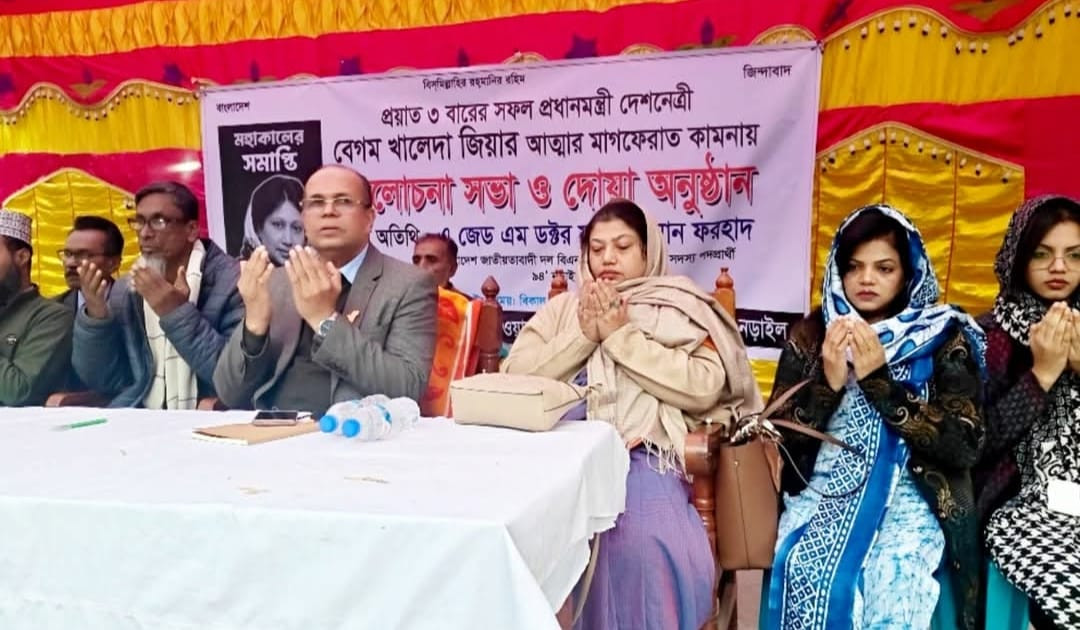 নড়ইলের লোহাগড়ায় প্রয়াত সাবেক প্রধানমন্ত্রী বেগম খালেদা জিয়ার আত্মার মাগফিরাত কামনা করে আলোচনা সভা ও দোয়া মাহফিল অনুষ্ঠিত।