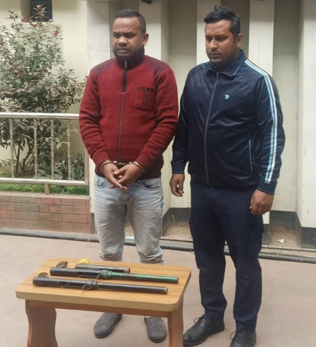 এ সময় তার কাছ থেকে তিনটি ওয়ান শুটারগান,ব্রাউন সুগার ১৮৫ গ্রাম, একটিএ্যান্ড্রোয়েড মোবাইল সেট ও কয়েকটি দেশীয় ছুরি উদ্ধার করা হয়।