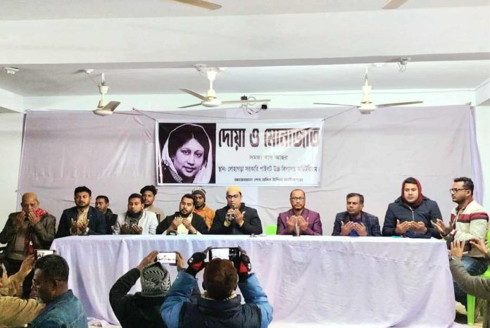 আলোচনা সভা শেষে বিএনপি চেয়ারপার্সন ও সাবেক প্রধানমন্ত্রী প্রয়াত বেগম খালেদা জিয়ার আত্মার মাগফিরাত কামনায় বিশেষ দোয়া ও মোনাজাত অনুষ্ঠিত হয়। দোয়া পরিচালনা করেন,লোহাগড়া উপজেলা বিএনপির সভাপতি মো. আহাদুজ্জামান বাটু।