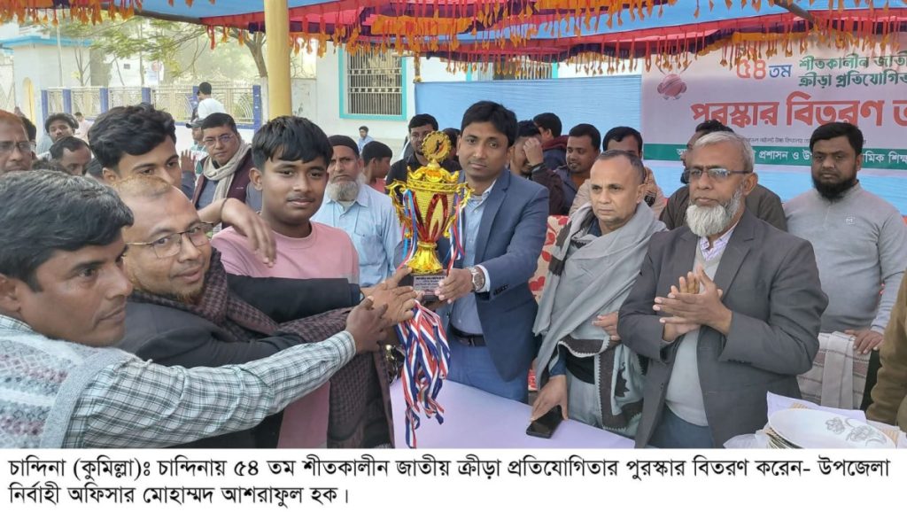 কুমিল্লার চান্দিনায় ৫৪ তম শীতকালীন জাতীয় ক্রীড়া প্রতিযোগিতার পুরস্কার বিতরণ করা হয়েছে।