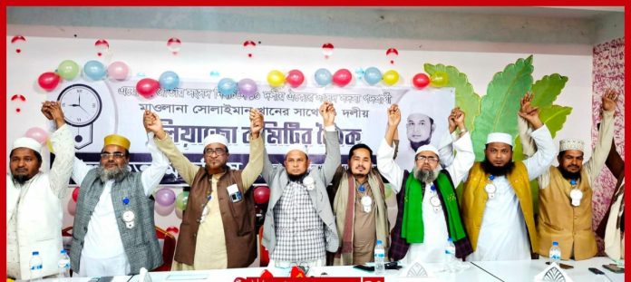 বৈঠকে প্রধান অতিথির বক্তব্যে মাওলানা সোলেমান খান, ১০ দলীয় জোটের প্রার্থী (ঘড়ি প্রতীক), বলেন—