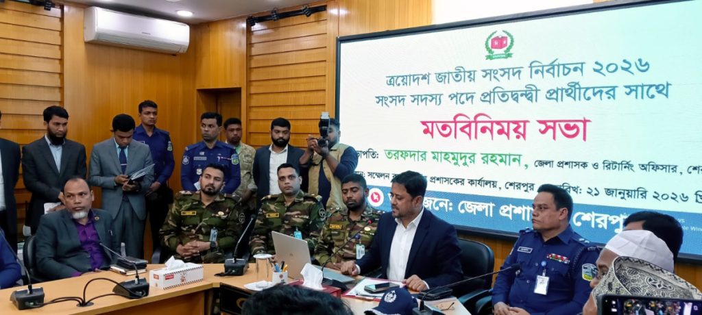 শেরপুর জেলার তিনটি সংসদীয় আসনে আসন্ন জাতীয় সংসদ নির্বাচনকে সামনে রেখে বৈধ প্রার্থীদের মাঝে প্রতীক বরাদ্দ সম্পন্ন হয়েছে। শেরপুর-১ (সদর), শেরপুর-২ (নকলা–নালিতাবাড়ী) ও শেরপুর-৩ (শ্রীবরদী–ঝিনাইগাতী) আসনে নির্বাচন কমিশনের অনুমোদনপ্রাপ্ত মোট ১৪ জন বৈধ প্রার্থীর মাঝে এ প্রতীক বরাদ্দ দেওয়া হয়।
