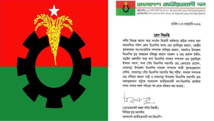 নড়াইলে দলীয় প্রার্থীকে সমর্থন না করে স্বতন্ত্র প্রার্থীকে সমর্থন করায় বিএনপির ৬ নেতা বহিষ্কার