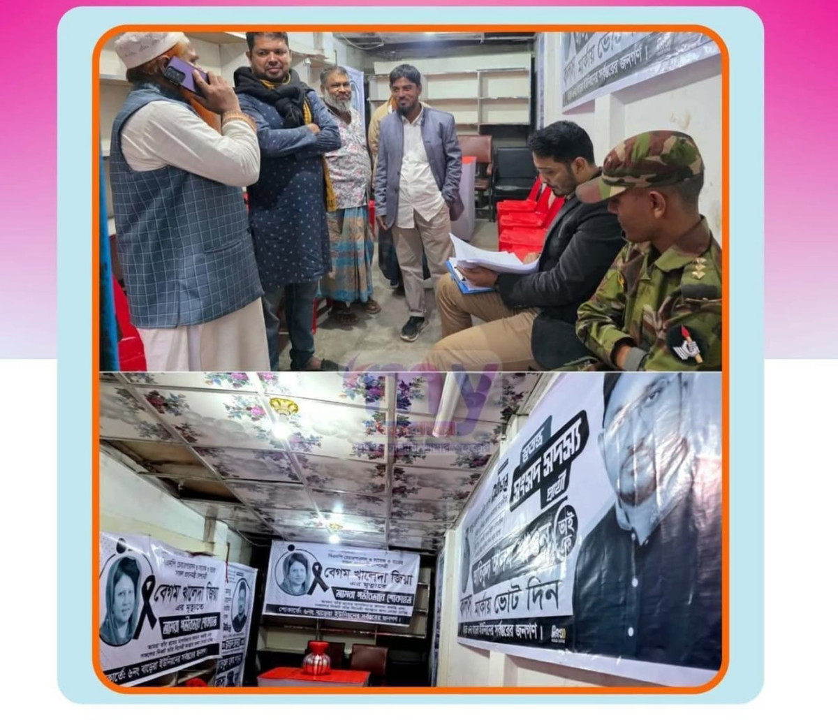 একই সময়ে সরকারি জায়গা দখল করে নির্বাচনী কার্যালয় স্থাপন করায় ভ্রাম্যমাণ আদালত কার্যালয়টি ভেঙে দেয়।