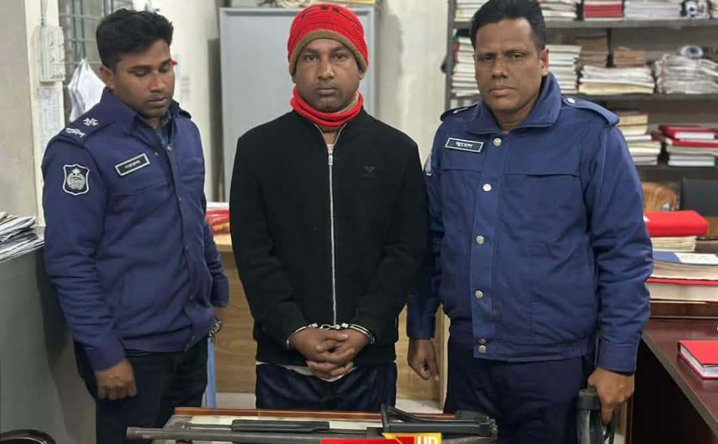 শেরপুর জেলার সদর উপজেলায় সেনাবাহিনী ও পুলিশের সমন্বয়ে পরিচালিত এক বিশেষ যৌথ অভিযানে পুলিশের লুট হওয়া একটি অবৈধ শর্টগান উদ্ধারসহ হারেজ মিয়া (৩২) নামে এক চিহ্নিত অস্ত্রধারী সন্ত্রাসীকে গ্রেফতার করা হয়েছে।