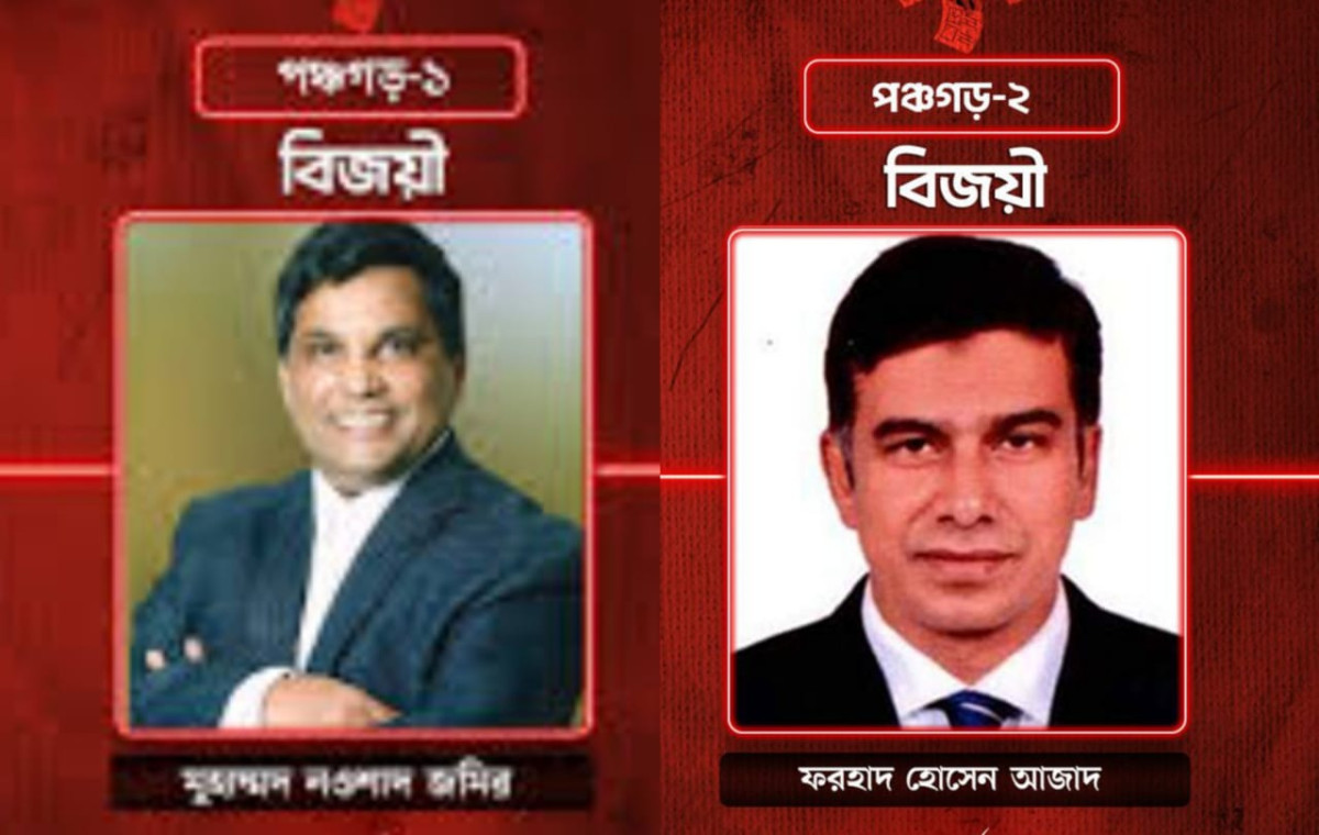অন্যদিকে পঞ্চগড়-২ আসনে বিএনপির পল্লি উন্নয়ন বিষয়ক সম্পাদক ফরহাদ হোসেন আজাদ বড় ব্যবধানে জয়ী হয়েছেন। রিটার্নিং কর্মকর্তা ও জেলা প্রশাসক কাজী মো. সায়েমুজ্জামান ঘোষিত বেসরকারি ফলাফল অনুযায়ী, ব্যারিস্টার নওশাদ জমির ধানের শীষ প্রতীক নিয়ে পেয়েছেন ১ লাখ ৭৬ হাজার ১৬৯ ভোট। তার নিকটতম প্রতিদ্বন্দ্বী ১১ দলীয় জোটের সারজিস আলম শাপলা কলি প্রতীক নিয়ে পেয়েছেন ১ লাখ ৬৮ হাজার ৪৯ ভোট।