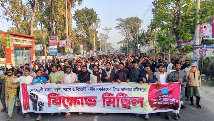 দেশব্যাপী হত্যা, ধর্ষণ, সন্ত্রাস ও বিরোধী দলীয় সমর্থকদের ওপর হামলার প্রতিবাদে বাগেরহাটে বিক্ষোভ মিছিল ও সমাবেশ করেছে বাংলাদেশ ইসলামী ছাত্রশিবির বাগেরহাট জেলা শাখা।