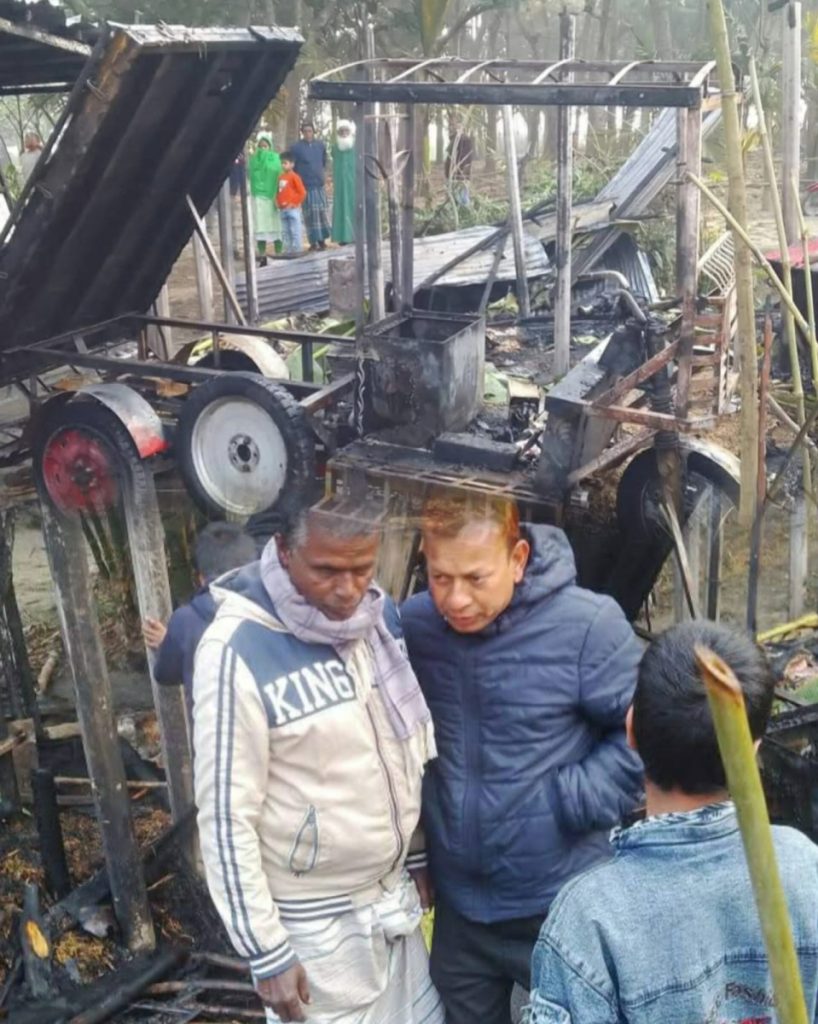 পরে মধ্যরাতে বাড়ির মানুষ ছাগলের ঘরে আগুন দেখতে পেয়ে চিৎকার শুরু করলে গ্রানবাসীরা ছুটে এসে আগুন নিভানোর কাজ শুরু করে এবং ফায়ার সার্ভিসে খবর দেয়। কিন্তু ততক্ষনে তার ২টি ঘর, ৯ টি ছাগল, ব্যাটারি চালিত ১টি অটোভ্যান সহ কয়েকটি হাঁস-মুরগি পুড়ে ছাই হয়ে গেছে।