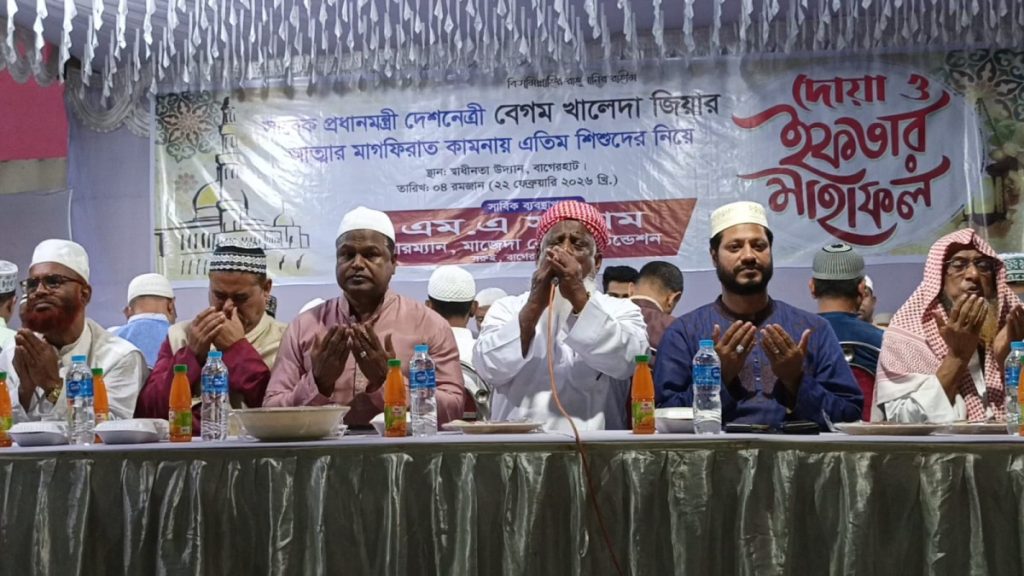 ইফতারপূর্ব দোয়া মাহফিলে সাবেক সফল প্রধানমন্ত্রী দেশনেত্রী বেগম খালেদা জিয়ার রূহের মাগফেরাত কামনার পাশাপাশি প্রধানমন্ত্রী তারেক রহমান ও তার পরিবারের সু-স্বাস্হ্য ও দীর্ঘায়ু কামনা করা হয়।।