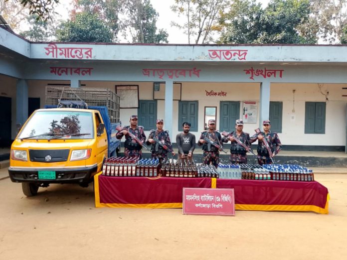 শেরপুরের শ্রীবরদী সীমান্ত এলাকায় বর্ডার গার্ড বাংলাদেশ (বিজিবি)-এর অভিযানে পিকআপ ভ্যান ভর্তি ৫৪৫ বোতল ভারতীয় বিভিন্ন ব্র্যান্ডের মদসহ এক মাদক কারবারিকে আটক করা হয়েছে।