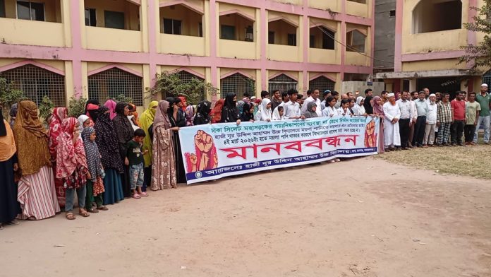 রোববার দুপুরে উপজেলার তারাব পৌরসভার বরপা এলাকায় বিদ্যালয় প্রাঙ্গণে এ মানববন্ধন অনুষ্ঠিত হয়।