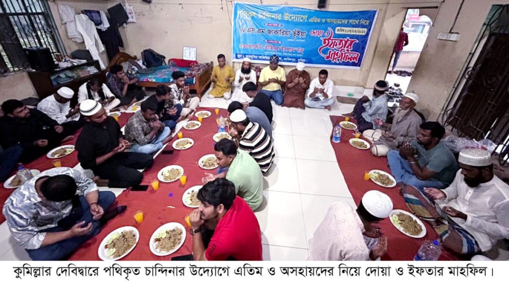 পবিত্র মাহে রমজান উপলক্ষে কুমিল্লার দেবিদ্বারে এতিম ও অসহায়দের নিয়ে দোয়া ও ইফতার মাহফিল অনুষ্ঠিত হয়েছে। পথিকৃত চান্দিনার উদ্যোগে শনিবার (০৭ মার্চ) সন্ধায় এই আয়োজন করা হয়।