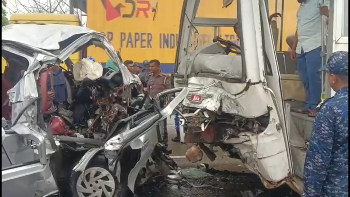 দুর্ঘটনায় মাইক্রোবাসটি দুমড়েমুচড়ে গেছে।