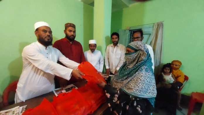 শুক্রবার দুপুরে শহরের প্যারাডাইস লাইব্রেরি সংলগ্ন এলাকায় প্রধান অতিথি হামিম রাহাত নারীদের মাঝে শাড়ি তুলে দেওয়া দেন।