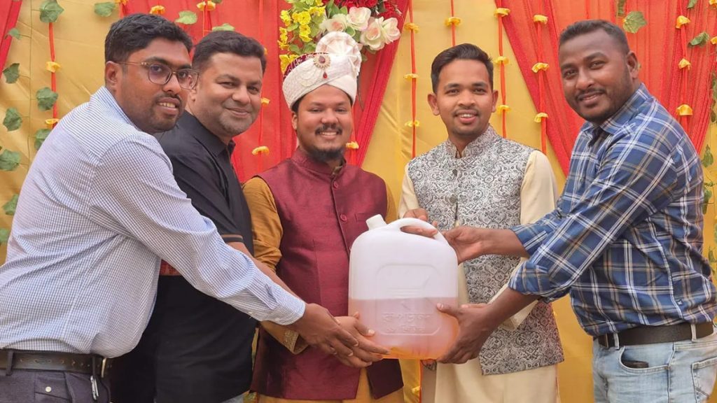সারাদেশে চলমান জ্বালানি তেলের তীব্র সংকট ও সরবরাহ নিয়ে টানাপোড়েনের এক ভিন্নধর্মী ও স্যাটায়ারধর্মী প্রতিফলন দেখা গেল ঠাকুরগাঁওয়ে। এক বিয়ের অনুষ্ঠানে বরকে উপহার হিসেবে দেওয়া হয়েছে ৫ লিটার অকটেন! যা উপস্থিত অতিথিদের মধ্যে হাস্যরস ও কৌতূহল সৃষ্টির পাশাপাশি দেশজুড়ে ব্যাপক আলোচনার জন্ম দিয়েছে।