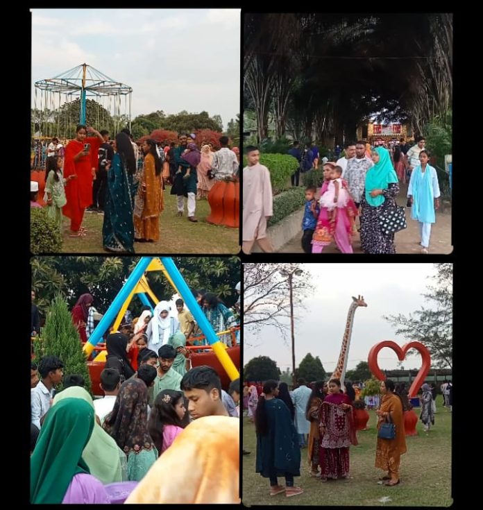 পবিত্র ঈদুল ফিতরের তৃতীয় দিনেও পঞ্চগড় জেলা জুড়ে বইছে উৎসবের রঙিন জোয়ার। টানা ছুটির আবহে মানুষের আনন্দ যেন থামতেই চাইছে না। পরিবার-পরিজন, বন্ধু-স্বজনকে সঙ্গে নিয়ে বিনোদন কেন্দ্রগুলোতে সবখানেই এখন একটাই সুর, আনন্দ আর অবকাশের।