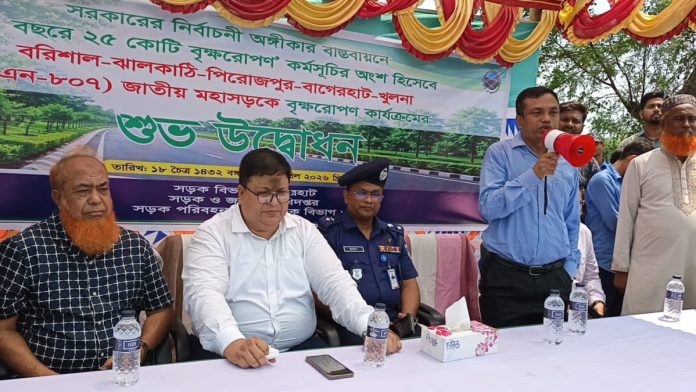 বাগেরহাটে জাতীয় মহাসড়কে বৃক্ষরোপণ কর্মসূচির উদ্বোধন
