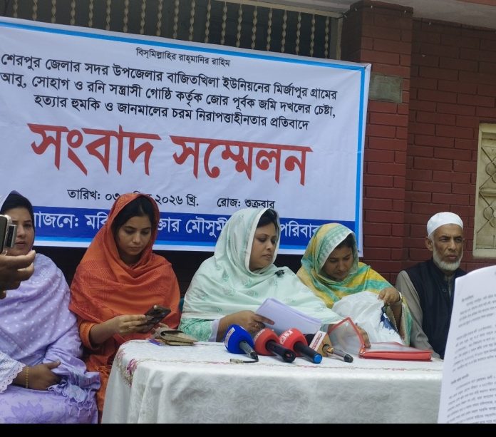শেরপুর জেলার সদর উপজেলার বাজিতখিলা ইউনিয়নের মির্জাপুর এলাকায় চার বোনের ওপর নির্যাতন ও পৈত্রিক সম্পত্তি দখলের চেষ্টার অভিযোগ উঠেছে স্থানীয় তিন ব্যক্তির বিরুদ্ধে।