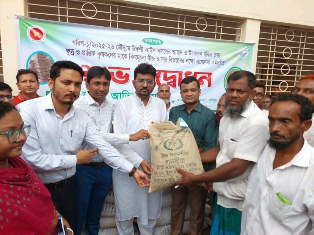 চান্দিনায় ক্ষুদ্র ও প্রান্তিক কৃষকদের মাঝে বিনামূল্যে বীজ ও সার বিতরণ কার্যক্রম শুরু