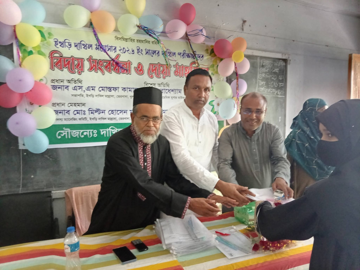 খুলনার তেরখাদা উপজেলার ঐতিহ্যবাহী ইখড়ি দাখিল মাদ্রাসায় ২০২৬ সালের দাখিল পরীক্ষার্থীদের বিদায় সংবর্ধনা ও দোয়া মাহফিল অনুষ্ঠিত হয়েছে।