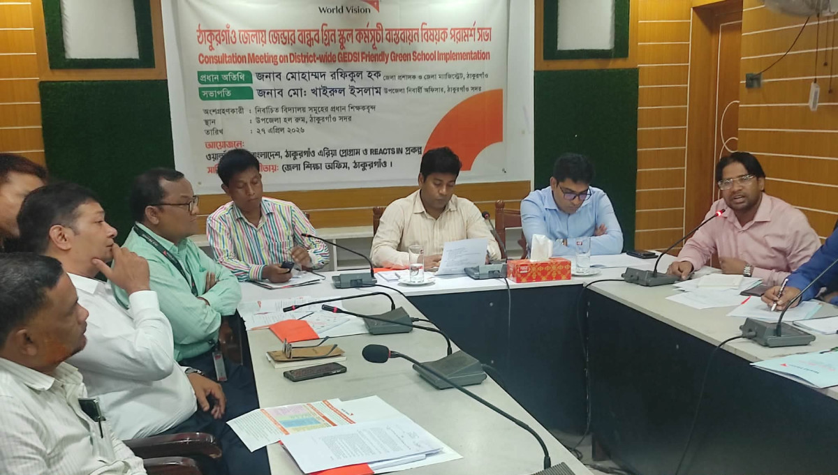 ঠাকুরগাঁও প্রতিনিধি: ঠাকুরগাঁও জেলার মাধ্যমিক বিদ্যালয়সমূহে জেন্ডার বান্ধব গ্রিন স্কুল কর্মসূচি বাস্তবায়নের লক্ষ্যে পরামর্শ সভা অনুষ্ঠিত হয়েছে।