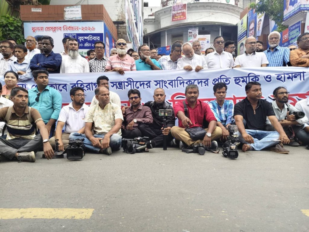 সোমবার (২৭ এপ্রিল) দুপুরে খুলনা প্রেসক্লাব চত্বরে আয়োজিত এ কর্মসূচিতে সাংবাদিকদের পাশাপাশি বিভিন্ন রাজনৈতিক ও সামাজিক সংগঠনের নেতাকর্মীরাও অংশ নেন।